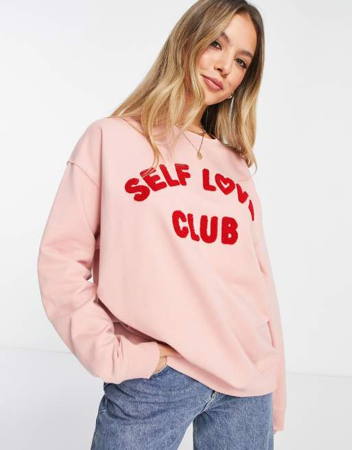New Look Self Love Club Logo Sweatshirt In Pink Asos